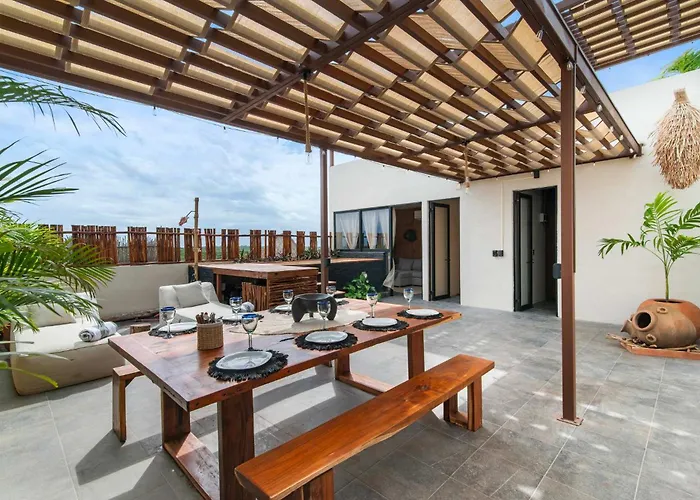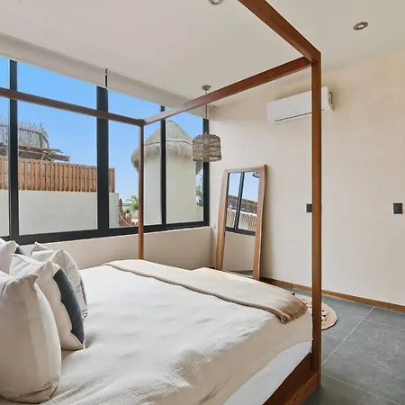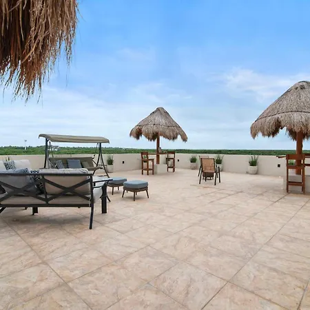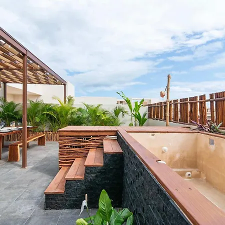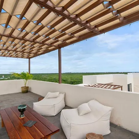 トゥルムでの休暇を楽しむには、ProKiteTulum Kiteboardingから1.5km離れた所で、Alumbra Mercado Orgánicoから徒歩で10分の広々としたPenthouse With Rooftop Plunge Pool - Distant Ocean トゥルムアパートがあります。 顧客の余暇を多様化するために、屋上プールもあります。